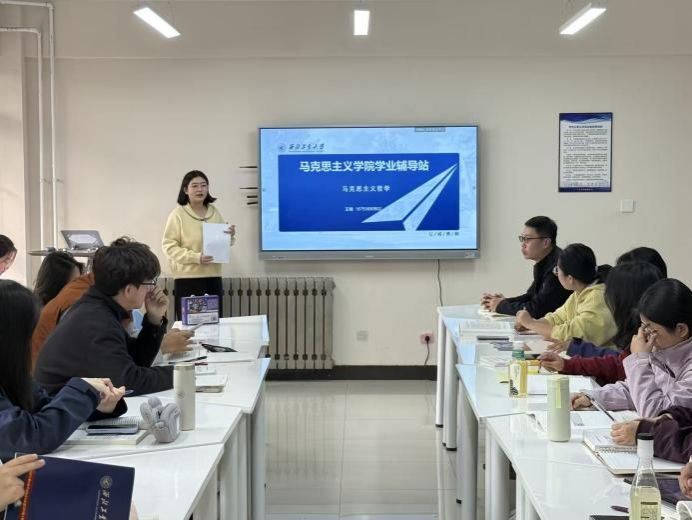 于11月13日在一站式学生社区举办了第一期“学业辅导站”。本次“学业辅导站”特邀我院2025级硕士生王楠担任“主讲小导师”,为全体本科新生针对《马克思主义哲学》开展学业辅导。本次活动由本科生辅导员董润主持。