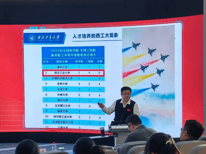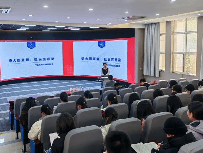 王宇波以“为谁培养人、培养什么人、怎样培养人”的教育根本问题为开篇,从“古路坝灯火”救国初心切入,深情讲述师昌绪、陈士橹等老一代前辈“科技救国”的伟大壮举;精准聚焦唐长红、陈勇等中生代校友铸大国重器的使命担当;细致讲解尹东、唐勇等新生代校友的强国实践。他通过“一个甲子的坚守”“史上最牛航空班”等一个个感人故事与动人细节深度解读人才培养的“西工大现象”,生动地为同学们展现了我校在不同时期为党育人、为国育才的深刻实践,勾勒出西工大人才培养传承图谱。他勉励同学们要将学校“公诚勇毅”“三实一新”的校训校风融入自己的成长生涯,结合涩涩视频