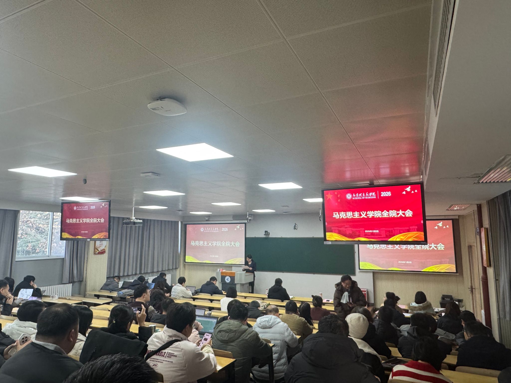 在友谊校区研究生西馆XB301室召开2025年终全院大会,学院全体教职工参加会议。会议由学院党委书记王彦革主持。
