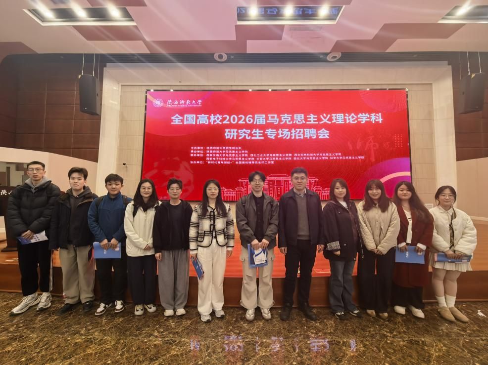 为切实推动学生高质量充分就业,搭建毕业生与用人单位精准对接平台,3月21日,我院作为协办单位,组织师生赴陕西师范大学长安校区参加全国高校2026届马克思主义理论学科研究生专场招聘会。