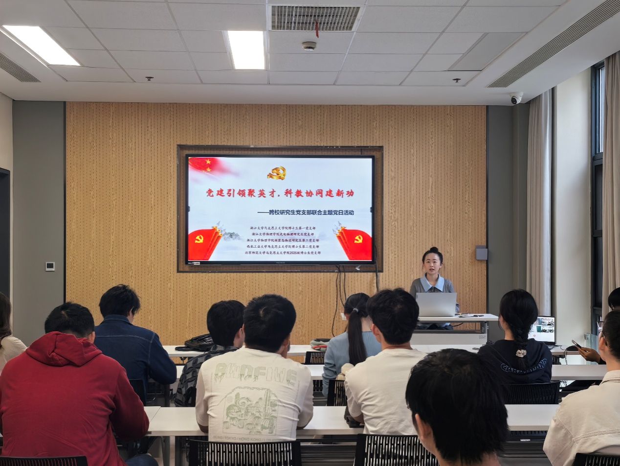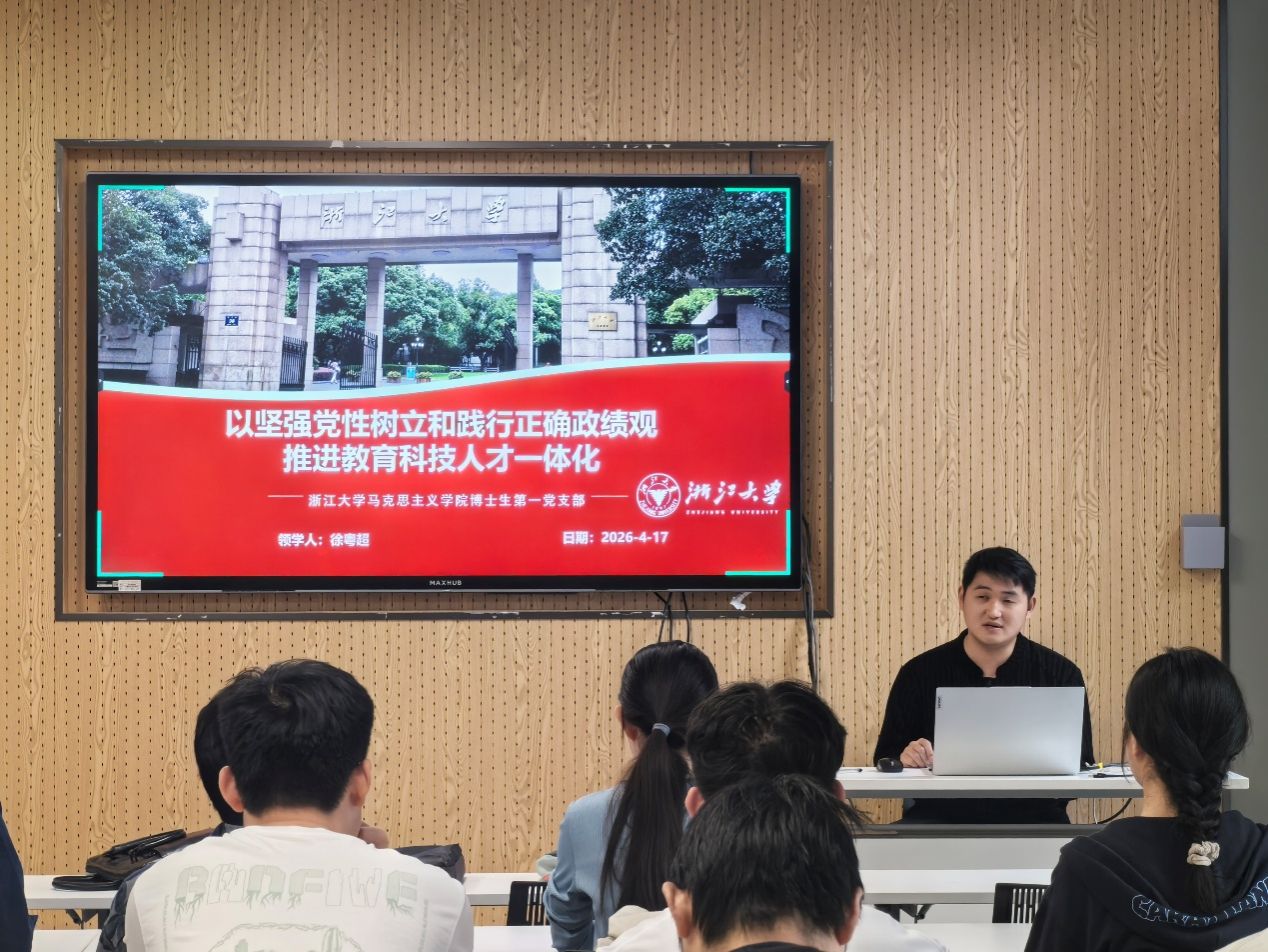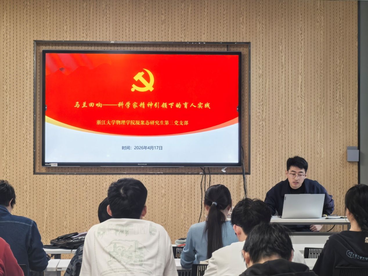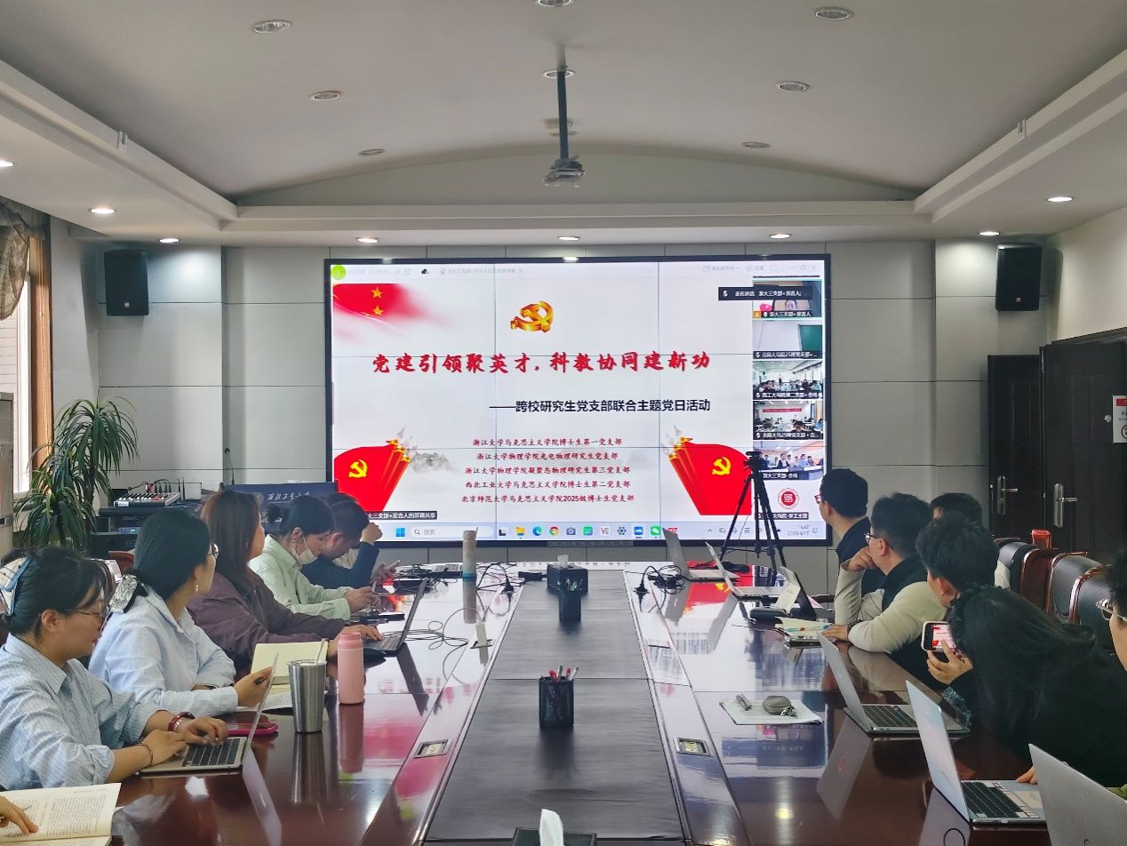 为深入学习贯彻党的二十届四中全会精神,落实教育、科技、人才一体化发展战略部署,在2026年这一“十五五”规划开局之年的重要节点,浙江大学涩涩视频 博士生第一党支部于4月17日牵头举办“党建引领聚英才,科教协同建新功”跨校研究生党支部联合主题党日活动。活动由浙江大学涩涩视频 博士生第一党支部副书记韩译心同志主持,浙江大学涩涩视频 博士生第一党支部、浙江大学物理学院光电物理研究生党支部、浙江大学物理学院凝聚态研究生第三党支部、涩涩视频 博士生第二党支部和北京师范大学涩涩视频 2025级博士生党支部的党员以线上线下结合的方式参加。