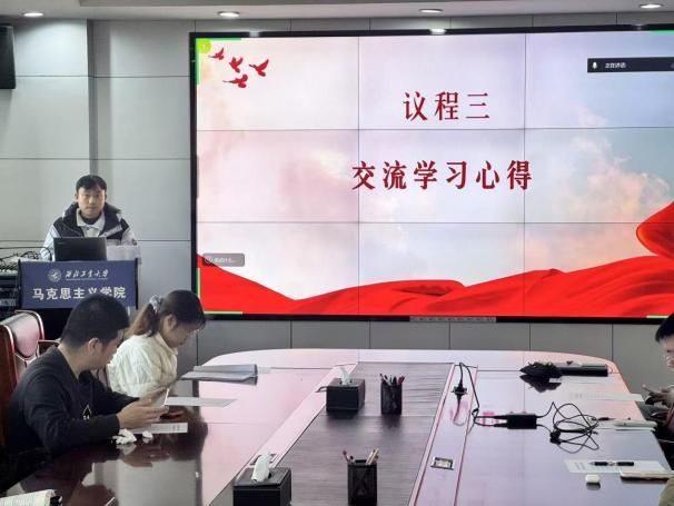 党员大会结束后,支部成员集体收看了学校组织的专题党课直播。